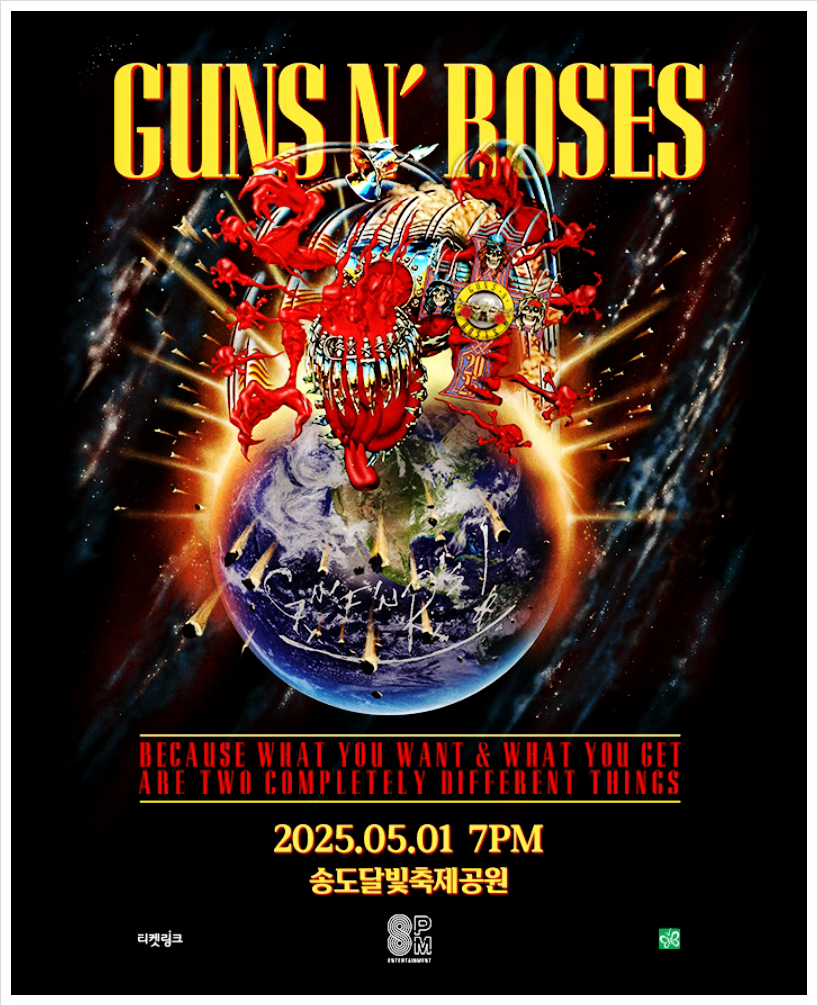 | Guns N' Roses World Tour | 2025.05.01 (목) 19:00 | 인천 송도달빛축제공원 | 12세 이상 | 150분 |